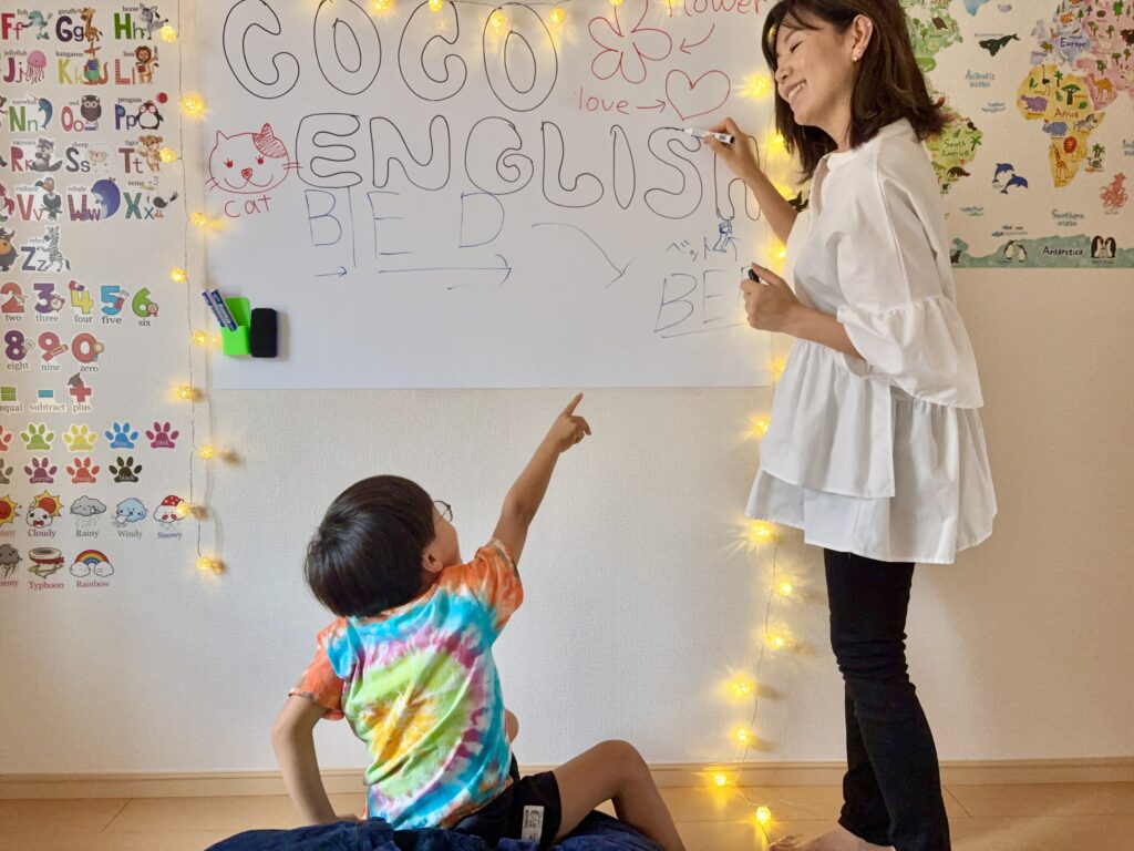 レッスンは、基本的にはオールイングリッシュで行います。(お子様の年齢に合せて日本語で説明する場合もあります。)